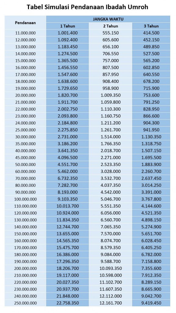 Pendanaan untuk keperluan Ibadah Umroh Anda, kini ada di BPR WM. Dengan angsuran pendanaan yang murah mulai dari > 10.000.000 hingga 250.000.000 dan dapat diangsur Hingga 3 Tahun!